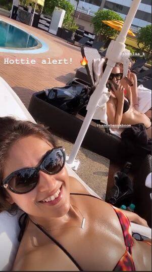 She is travelling with her friends Shehlaa Khan and Hannah. Ileana also posted other pictures where she is seen in a flame-red bikini with sunglasses. It is nice to see her so happy.